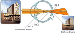 Der Astigmatismus ist eine Fehlsichtigkeit, die durch eine veränderte Hornhautkrümmung (angeboren oder durch Verletzungen/Narben) entsteht. Beim normalsichtigen Auge ist die Hornhaut nicht kugelförmig gekrümmt, sondern sie besitzt in senkrechter und waagerechter Richtung bestimmte, genau aufeinander abgestimmte Krümmungen. Diese Krümmungen sind notwendig, damit sämtliche Lichtstrahlen exakt auf der Netzhaut abgebildet werden können. Ist die Hornhaut jedoch in einer der Richtungen verändert, z. B. stärker oder schwächer gebogen, wird das Licht in unterschiedliche Richtungen gebrochen. Ein rundes Objekt, z. B. eine Kugel, erscheint dann strich- bzw. stabförmig.